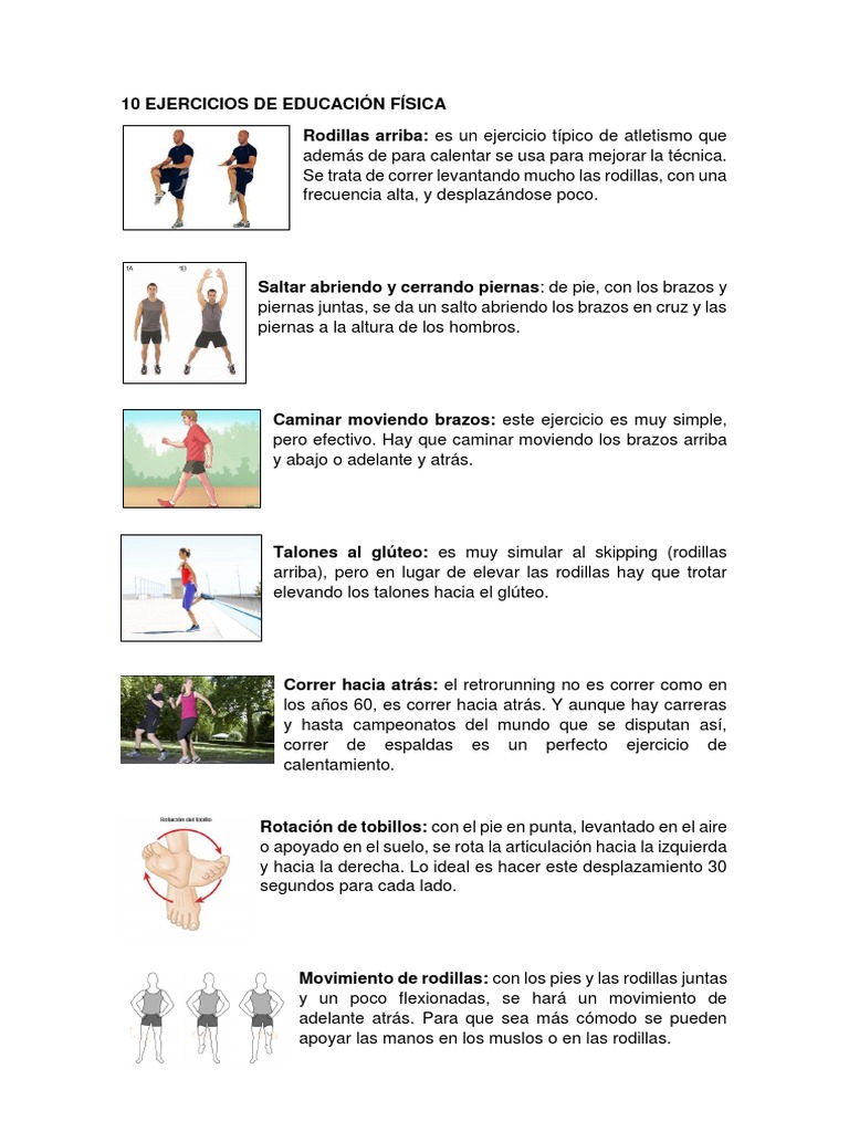 A continuación, te presento los 10 ejercicios más comunes de la Educación física: